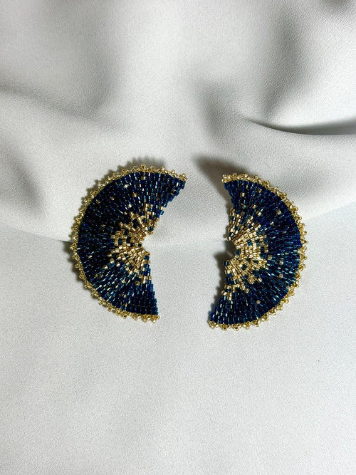 Aretas abanico azul y dorado